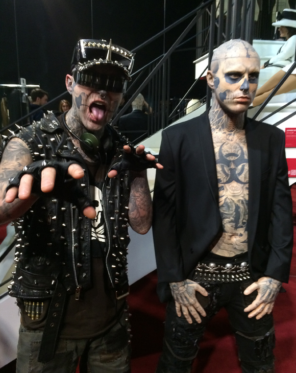 Zombie Boy a sa statue de cire au Musée Grévin Montréal! Le mannequin Zombie Boy, akaRick Genest, que l’on connaît entre grâce à sa collaboration avec Lady Gaga dans le clip Born This Way, a eu l’honneur de rencontrer sa statue de cire hier au Grévin Montréal. En entrevue avec le journaliste Patrick Delisle-Crevier, le personnage plus que tatoué a été fidèle à lui-même: mystérieux, énigmatique et très extraverti!