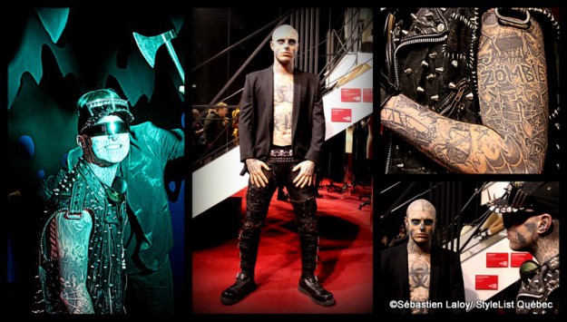 Tantôt porte-parole de L'Oréal, tantôt mannequin pour Thierry Mugler, icône auprès de Lady Gaga ou acteur, Zombie Boy ne cesse de surprendre et d'attirer les projecteurs. Cet après-midi, le Musée Grévin de Montréal l'invitait à découvrir en primeur la statue de cire réalisée à son effigie. Conviés à l'événement et curieux de rencontrer ce jeune homme sulfureux qui ne cesse de faire frétiller la planète mode et pop, nous nous sommes immiscés dans ce freakshow grandeur nature.